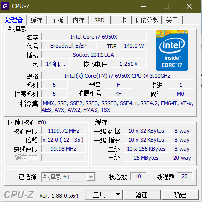 | 基本要素 | 酷睿™ i7-6950X | 酷睿™ i7-6850K | 酷睿™ i7-5960X | 酷睿™ i7-6900K |